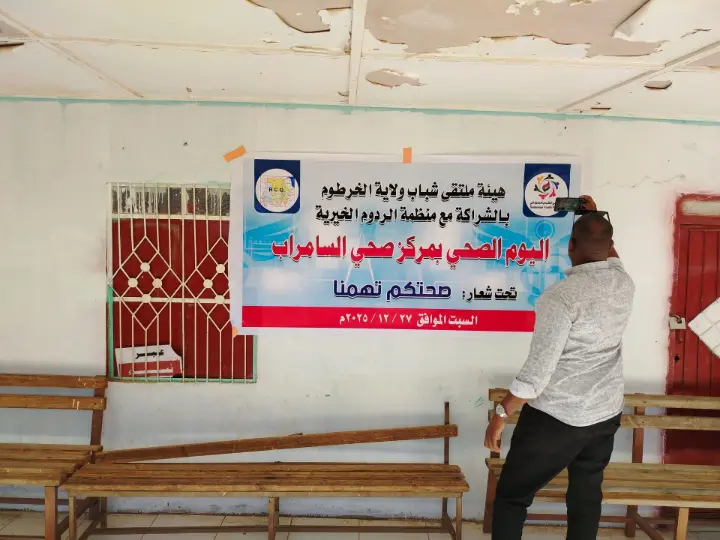 As part of its programs aimed at addressing humanitarian conditions in Khartoum State and to facilitate the voluntary return of citizens, Al-Radom Charity Organization held a health day in the Al-Samarab area of Khartoum State in December 2025